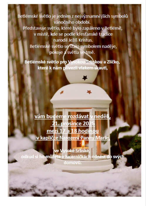 Úvod > Obec > Aktuality > Betlémské světlo 21. prosince 2025
