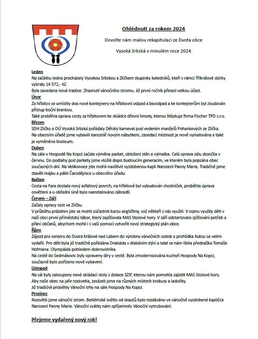 Dění v obci Vysoká Srbská - malé ohlédnutí za rokem 2024