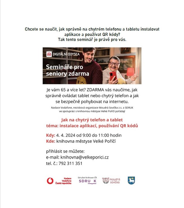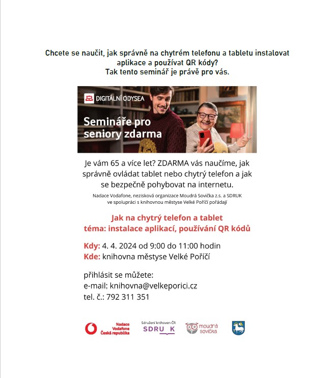 Jak na chytrý telefon a tablet - seminář pro seniory 4. 4. 2024