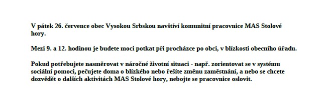 © 2026 OBEC VYSOKÁ SRBSKÁ, Kontaktovat webmastera, Prohlášení o přístupnosti, Mapa stránek