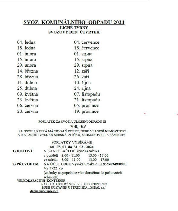 Úvod > Obec > Aktuality > Svoz komunálního odpadu na rok 2024