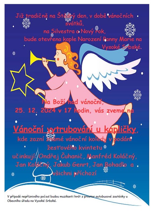 Úvod > Obec > Aktuality > Vánoční vytrubování u kaple Narození Panny Marie ve Vysoké Srbské 25. 12. 2024