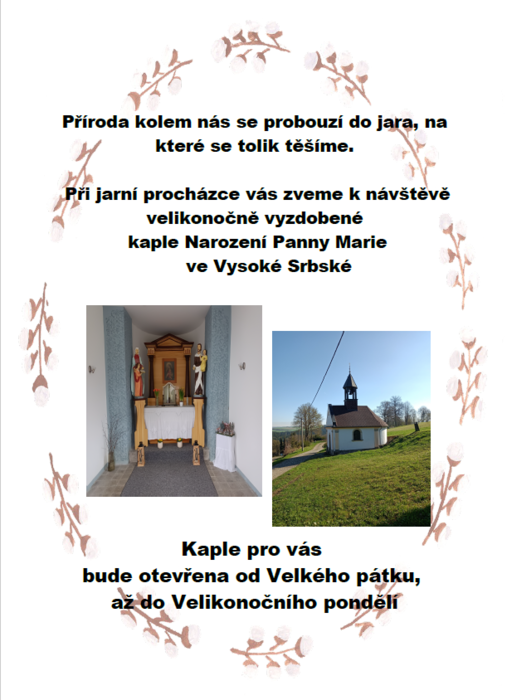 Úvod > Obec > Aktuality > Velikonočně vyzdobená kaple Narození Panny Marie ve Vysoké Srbské