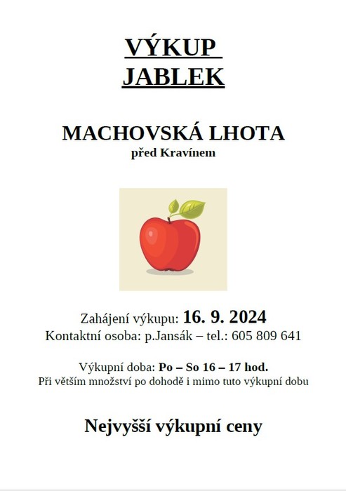 Úvod > Obec > Aktuality > Výkup jablek - Machovská Lhota
