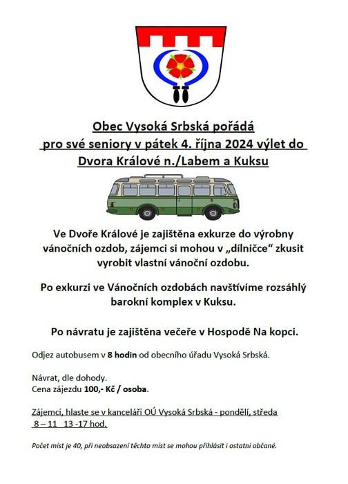 Úvod > Obec > Aktuality > Zájezd pro seniory do Dvora Králové n./Labem a Kuksu v pátek 4. 10. 2024