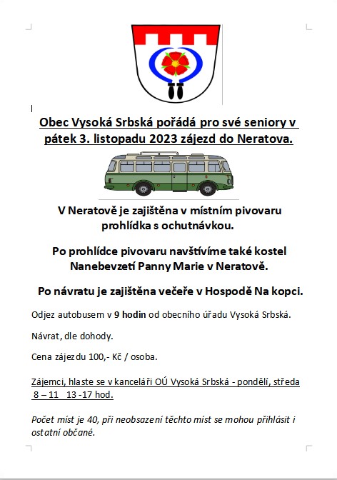 Úvod > Obec > Aktuality > Zájezd pro seniory do Neratova v pátek 3. 11. 2023