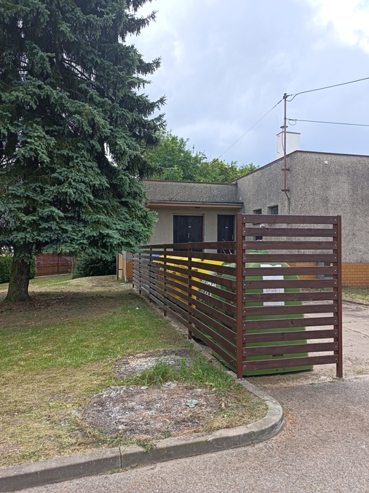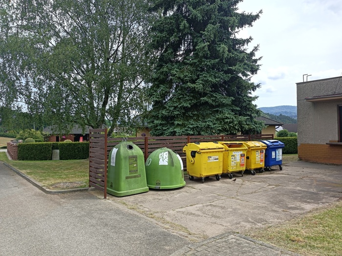 Úvod > Obec > Fotogalerie > Hnízdo pro kontejnery na tříděný odpad u bývalé prodejny potravin