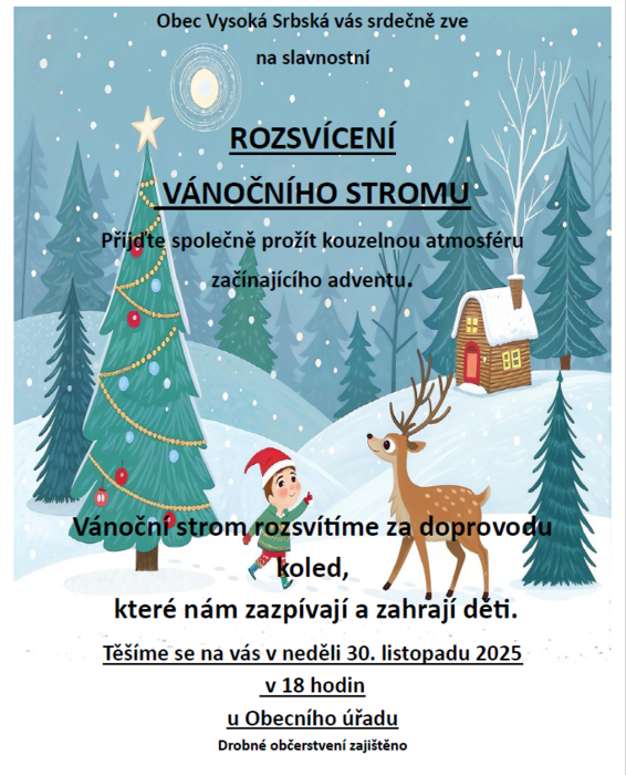 Úvod > Obec > Fotogalerie > Rozsvícení VÁNOČNÍHO STROMU 30. lispopadu 2025
